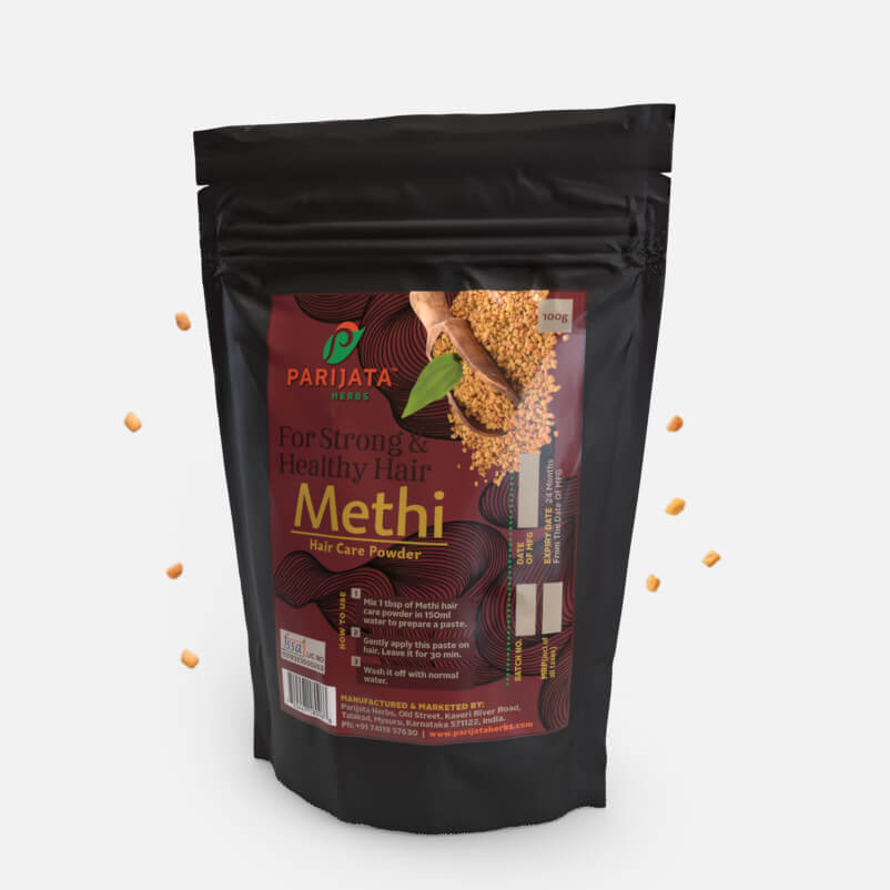 Methi powder is a rich source of vitamins A, K & C, folic acid, potassium, calcium, iron, and protein, which are essential nutrients for hair growth. Additionally, Methi powder promotes a healthy scalp environment which contributes to hair growth.